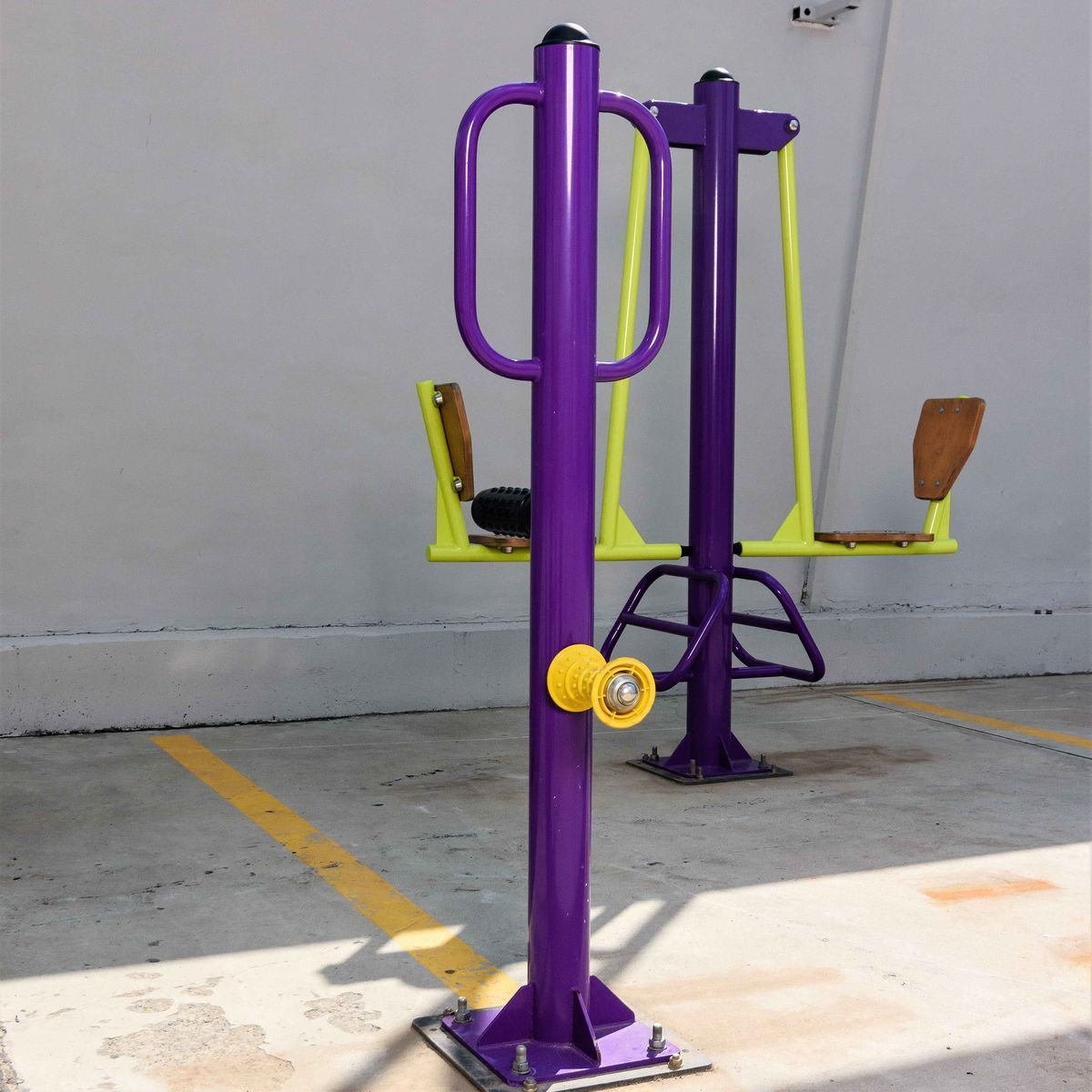 Конструктивно тренажёр состоит из рамы-столба, расположенных на разной высоте массажных узлов и металлических ручек.