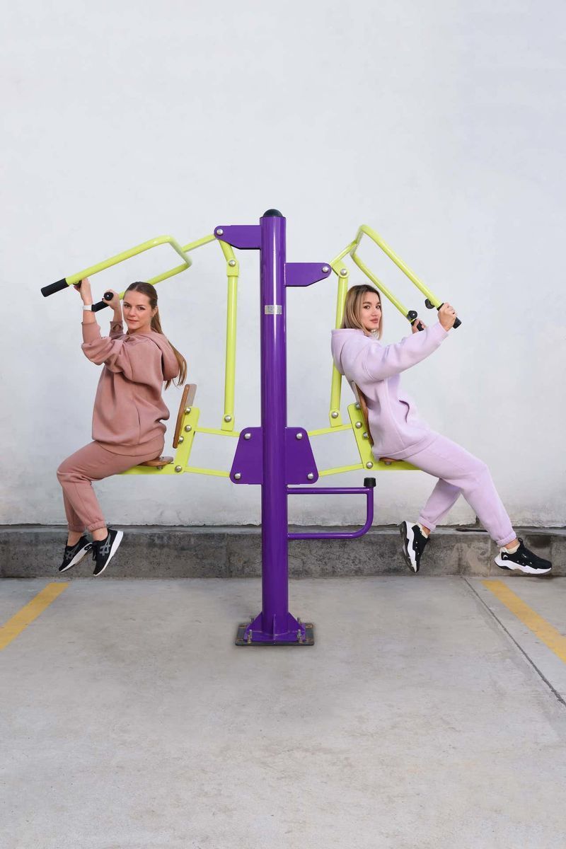 Тренажёр предназначен для тренировки мышц рук и спины.Конструктивно тренажёр состоит из рамы, рычагов-сиденья, рычагов-ручки и связанно между собой системой из подвижных рычагов. На рычагах располагаются: сиденье со спинкой и ручки. Перемещение рычагов ограничивается резиновым отбойником на специальном упоре.