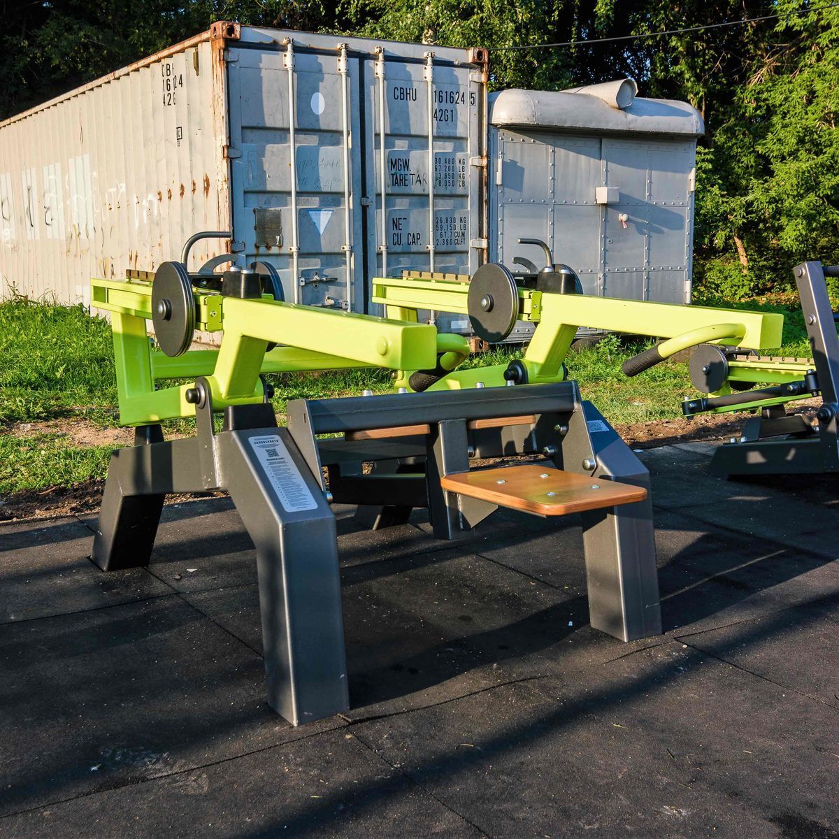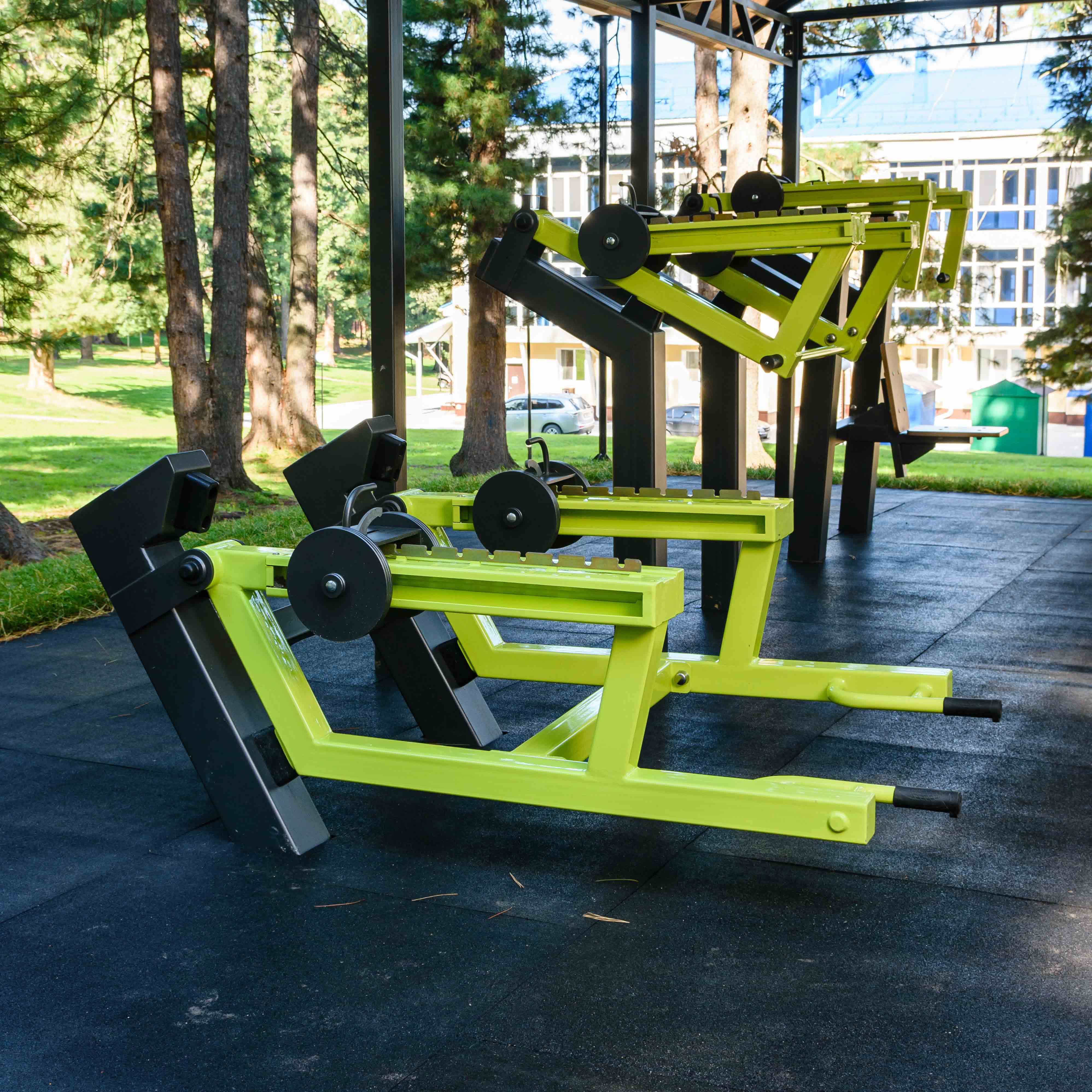 Длина, 2060 мм Ширина, 1250 мм Высота от цокольной опоры, 1100 мм Длина цокольной опоры, 700 мм Вес тренажера, 215 кг