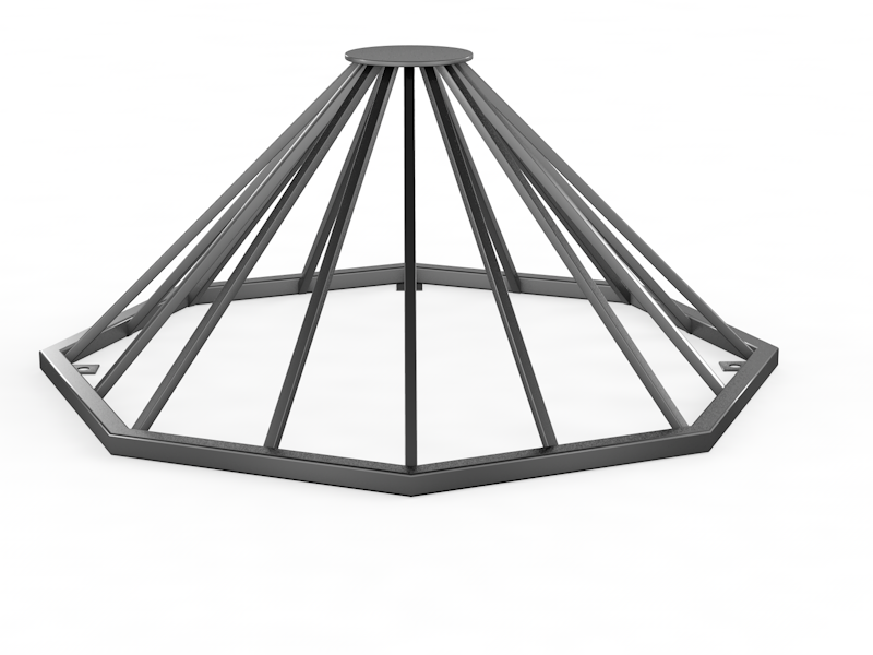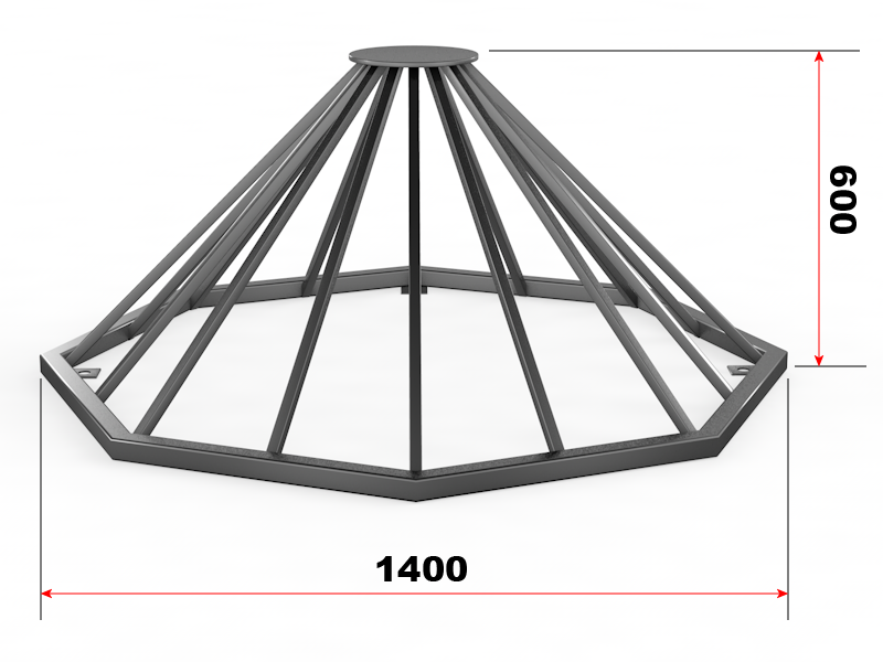 Способ крепления: опорный профиль имеет приваренные дужки с отверстиями для крепления велопарковки к покрытию анкерами.