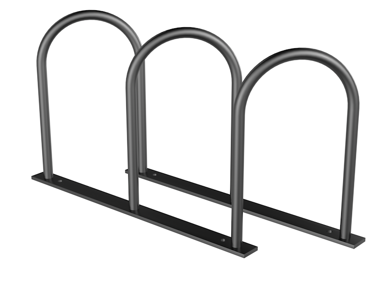 Способ крепления: опорная полоса имеет отверстия для крепления велопарковки к покрытию анкерами.